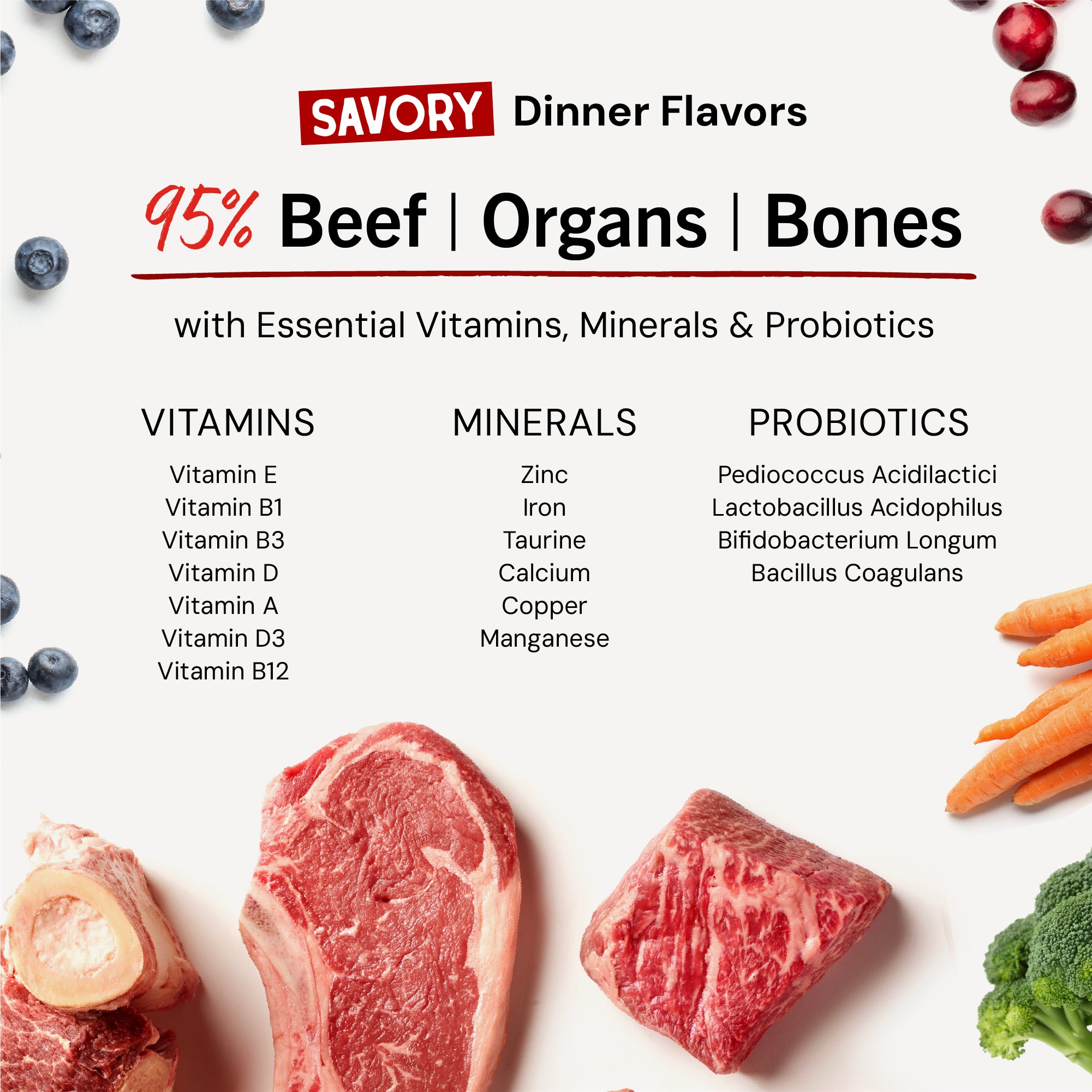 - 95% beef, organs, and bone