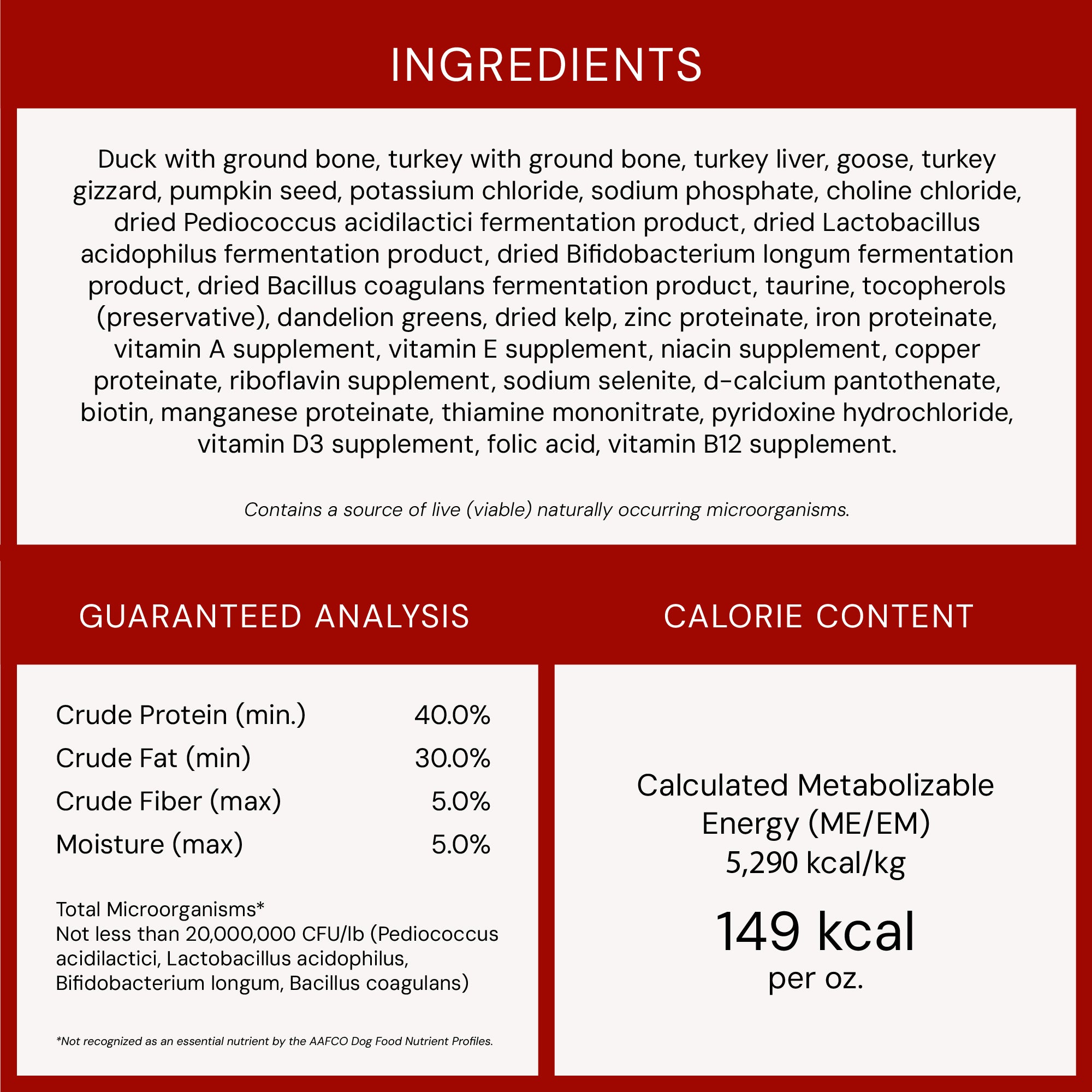• 95% duck, nutrient-rich organs, & bone