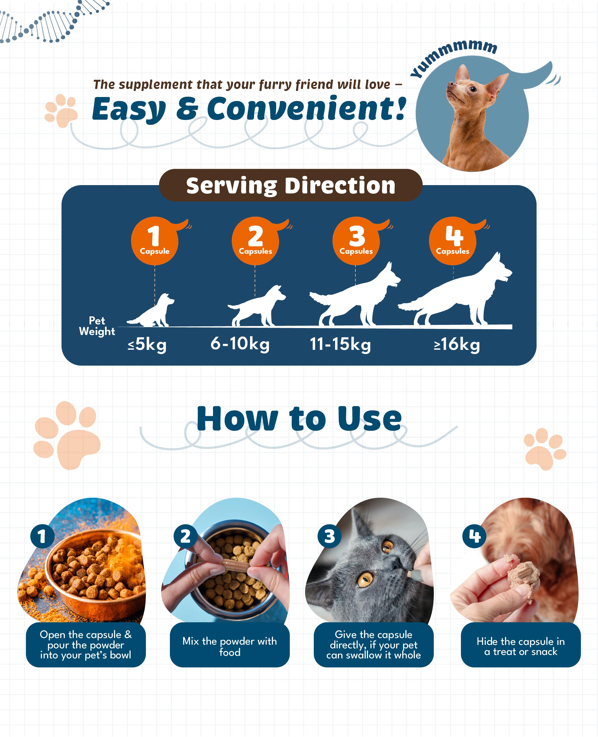 Enjoy a 5% off discount when purchase any dry pet food over 1kg packing.